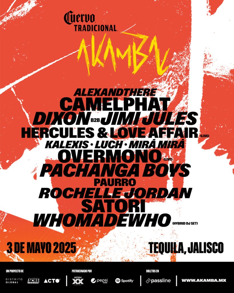 La próxima edición de Akamba se celebrará el 25 de abril de 2026, nuevamente en los campos de agave de José Cuervo, en Tequila, Jalisco. Los primeros artistas confirmados dejan claro el rumbo de esta nueva entrega: una curaduría enfocada en el club y la pista de baile.